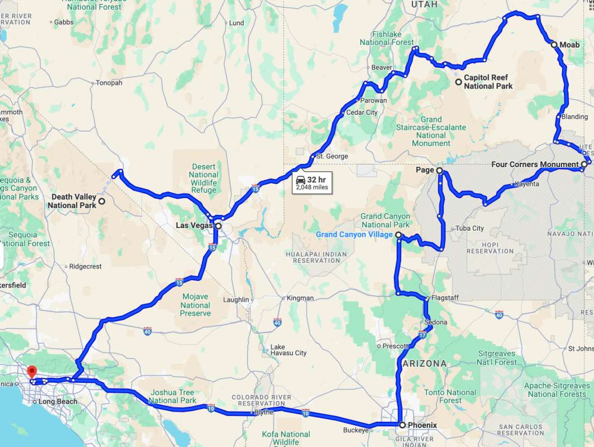 Гарантований тур: Лос-Анджелес | Лас-Вегас | НП Долина Смерті | Каньйон Вірджин | НП Зайон | НП Брайс Каньйон | НП Кепітол-Риф | Долина Гоблінов | НП Парк Арки | Моаб | Парк Точка Мертвого коня | Долина Монументів | Пейдж | Глен-Каньйон та дамба Глен | оз. Пауелл | Каньйон Антилопи | НП Гранд Каньйон | Траса 66 | Флагстафф | Седона | Фінікс | Палм-Дезерт | Лос-Анджелес